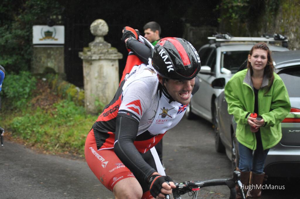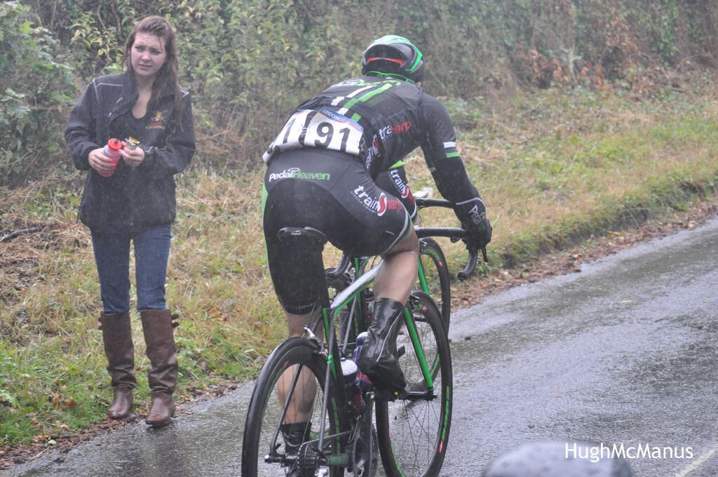A procession of cars line the hedgerows on the steepest part of the course. (A measly 25%climb up Milland Hill) People mill around. Hoods up. Caps on. Umbrellas held low to avoid the driving rain from sneaking, cold and unpleasant in to collars.