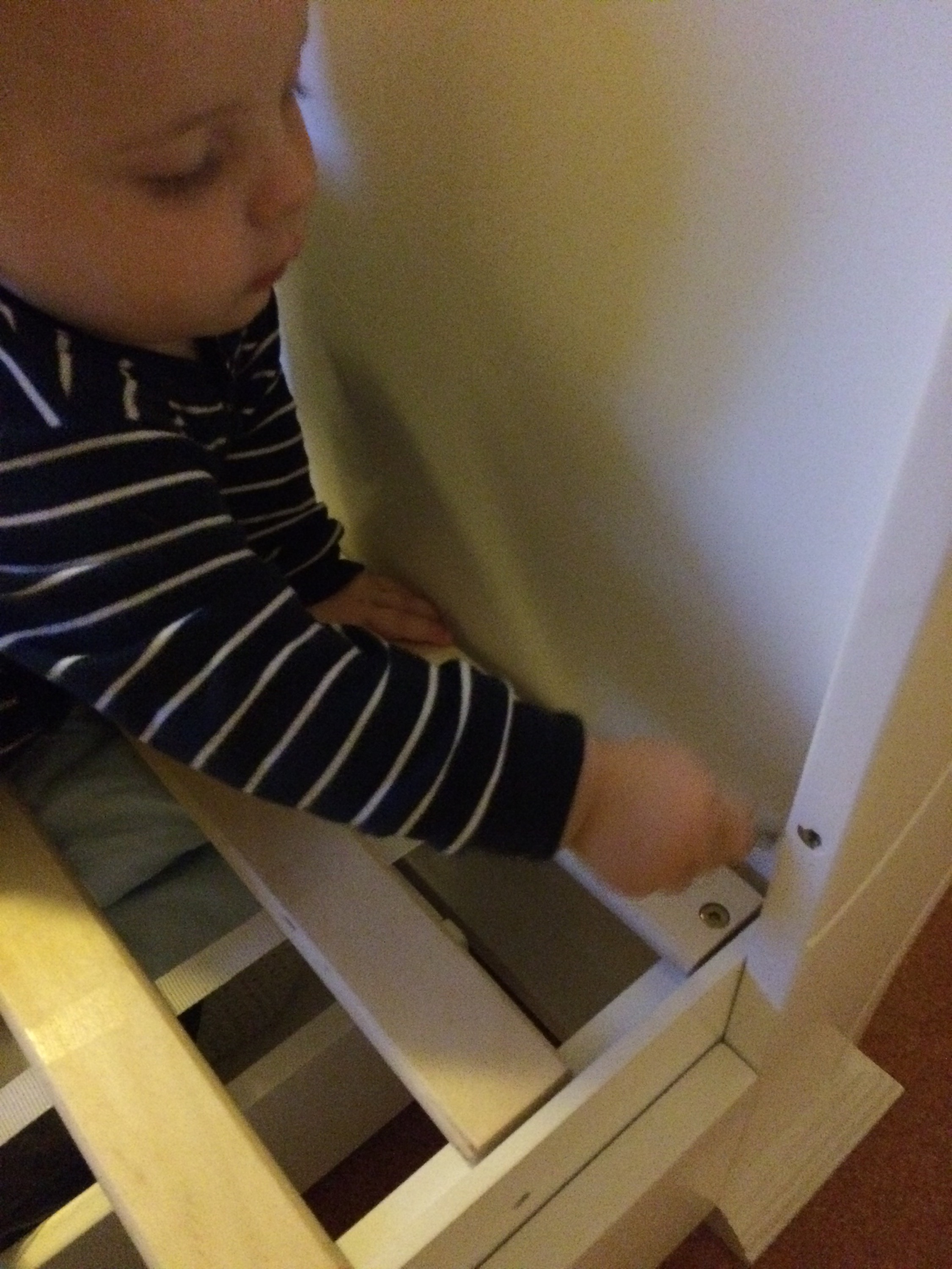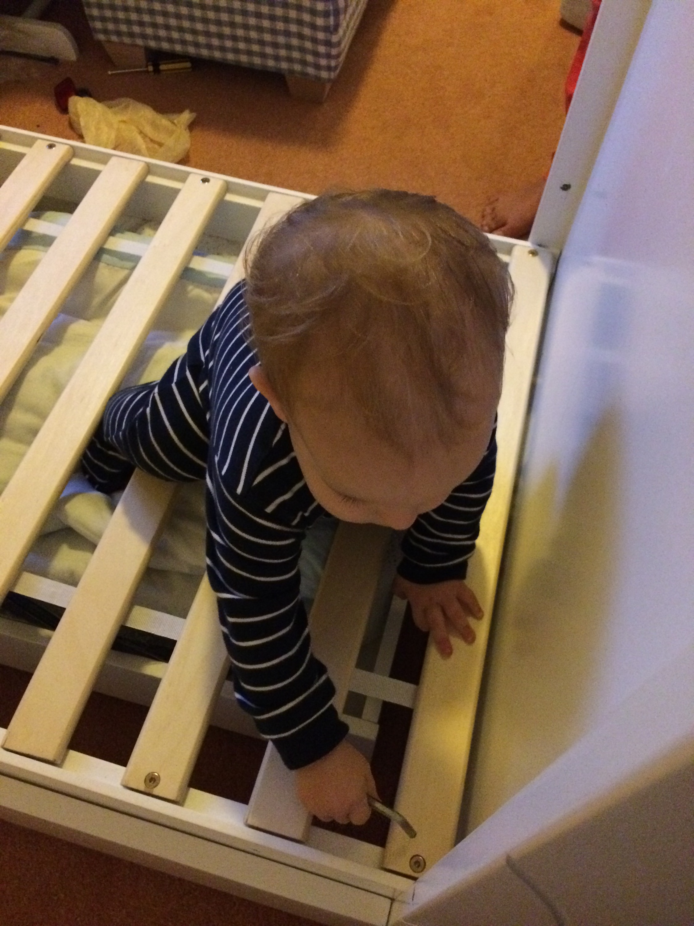With a little help from the toddler, Michael and I tackled the nursery we hung clothes, built the cot and unpacked toys and books. By 8.30 pm the boy was bathed and smelling of massage lotion, and by 9.20 pm just has hubby returned from a food run, Sebastien was fast asleep.