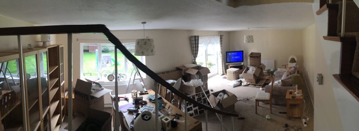 I charged myself with being brew bitch, whilst strategically positioned so that no box could be put in the house without my direction. By 7.11pm the movers had gone, and we were left with a house so full of boxes we couldn’t move.