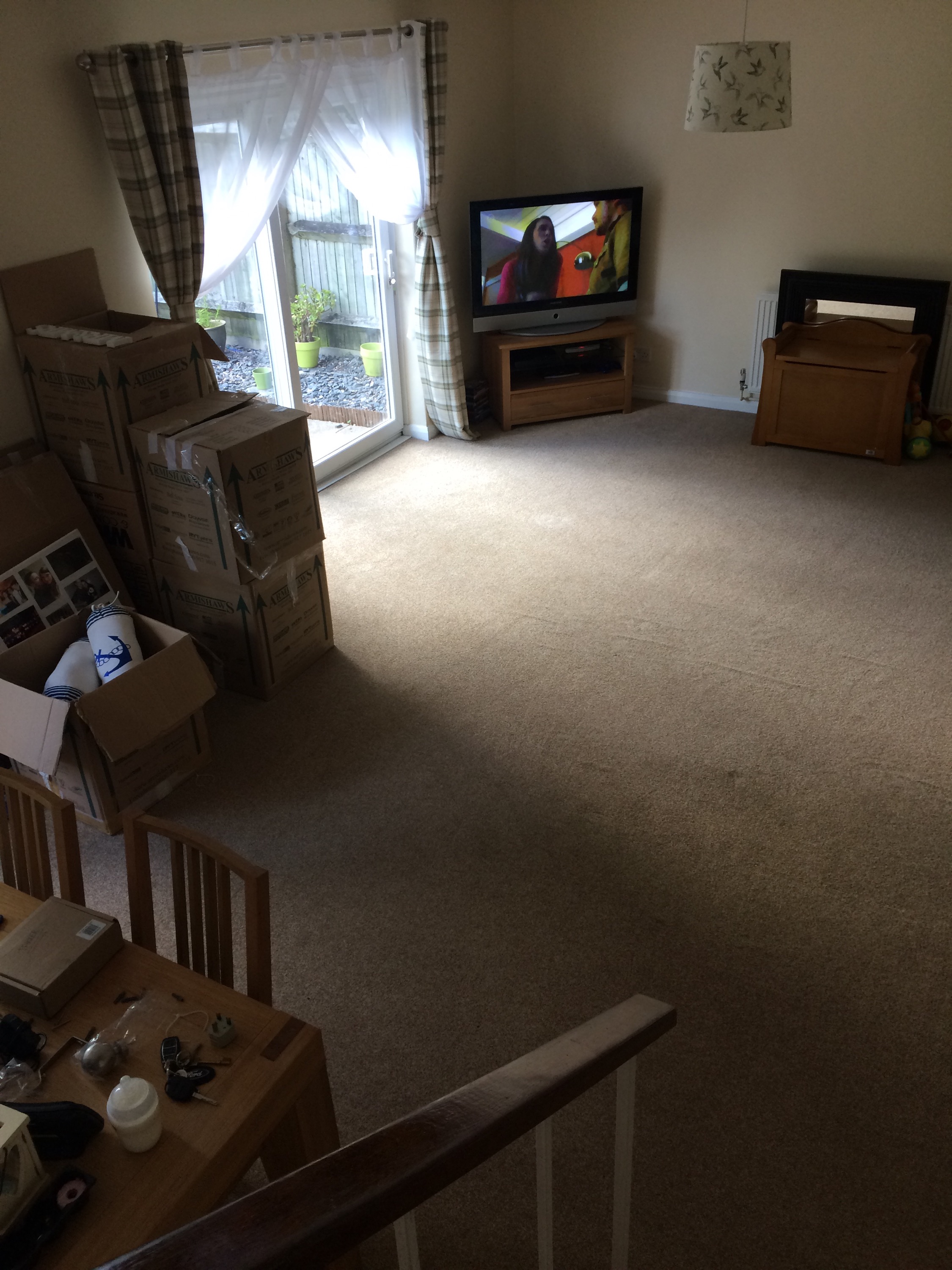The next 47 minutes (including tea/coffee break) were absolute bedlam. A hurried trail of removal men in and out of the house, asking where each box would go. A toddler who was waaaaay past hungry/bored and the poor teenager trying her best to entertain him and (mostly successfully) keep him out from under people’s feet.