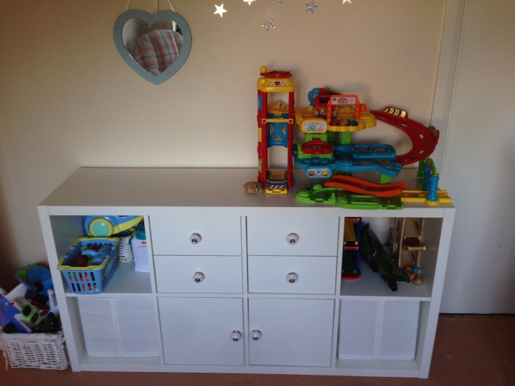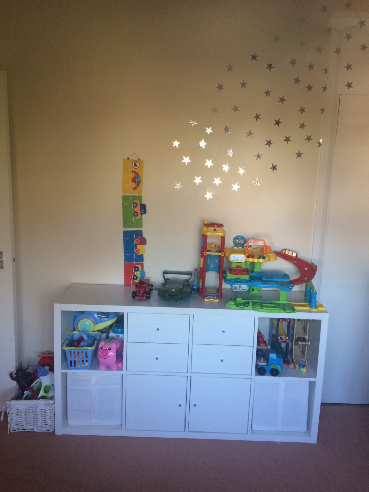 Update! I’ve changed the handles on the Kallax 🙂 grey and pink stars.