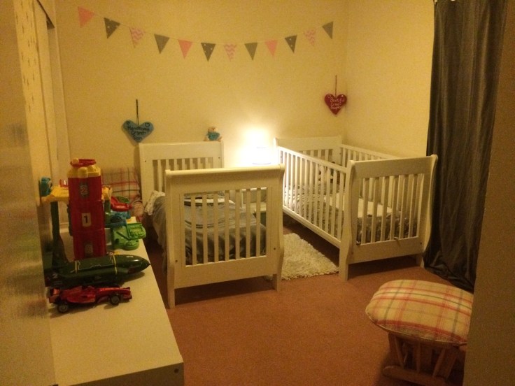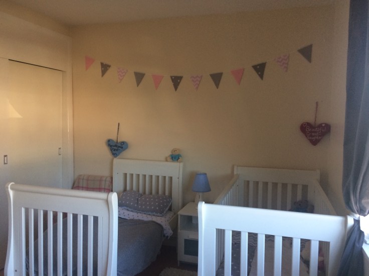For those if you that don’t know us, we have an adopted teen, then two young children, S is 2.5 years and V is 9 months. As soon as we found out we were having a girl my mission started to change the nursery from blue gingham to pink and Grey.