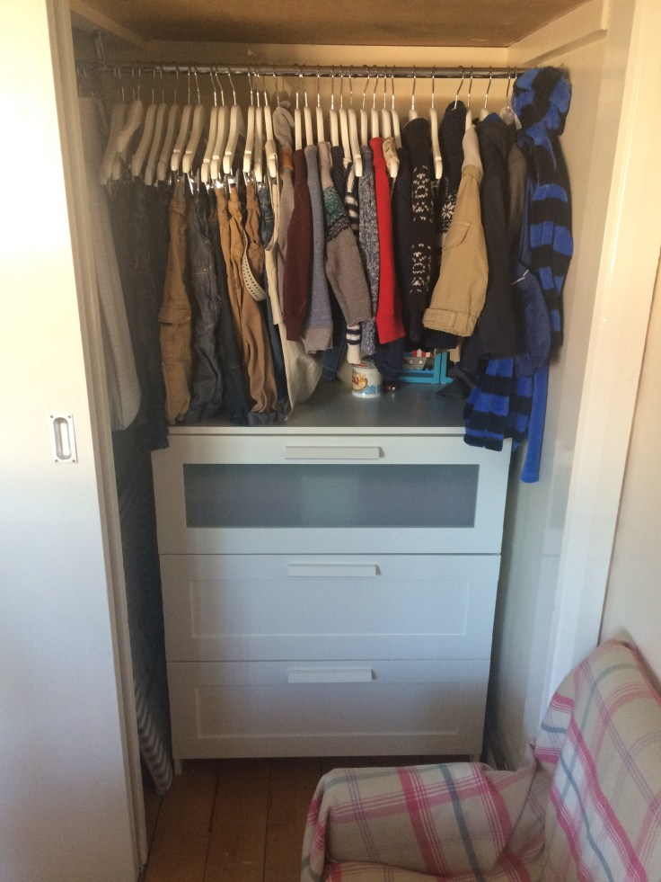 Drawers stashed in the wardrobes. Hangers are wooden ones from Hangerworld