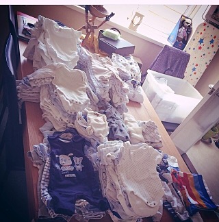 Most of the tiny size clothes are barely worn, and barring those that get obliterated with a poopsplosion. Seriously, just throw that (shit) in the bin. You do not need to spend 3 hours trying to make the Vest white again! Second hand newborn clothes purchased in bundles on eBay or Facebook are a great cost effective way to build up a lovely collection of clothes. I went completely overboard when S was a newborn and had way too much, so when V came along I reduced the clothes stash somewhat. Favouring babygrows and vests over outfits.